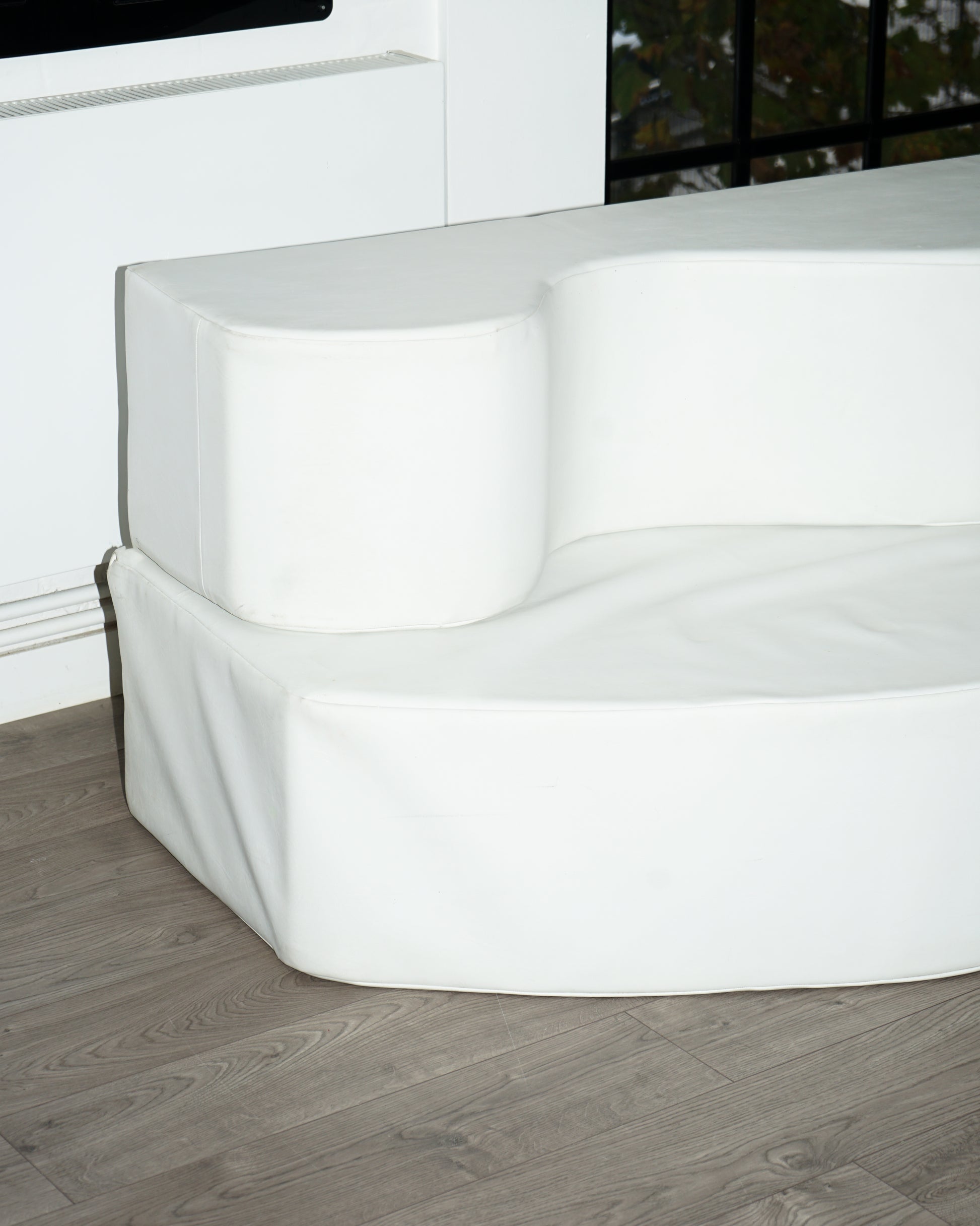 White Superonda Sofa by Archizoom Associate for Poltronova, 1967. In good overall condition, with some light marks and a few holes on the corners from wear. Please note, one large cut to the bottom cushion (not visible once flat, as it’s on the underside)